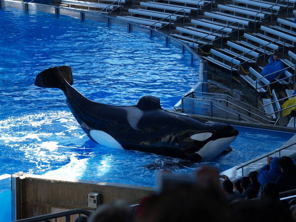 有別於家中男性對Shamu的偏好,我個人最喜歡的show是由舞者、鳥類與海豚共同表演的"Blue Horizon"。雖然沒有旁白與對話,透過表演者的服裝與動作,再加上跳躍的海豚與自觀眾席後方飛出的色彩繽紛的小鳥,整個過程讓人經歷一場非常棒的視覺饗宴。